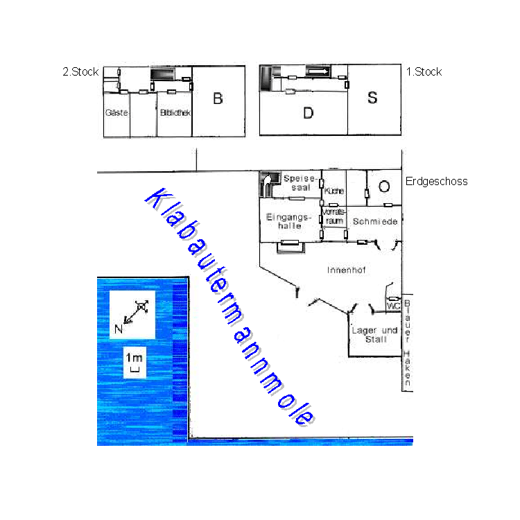 Platz für eine Schiffshalle und Schmiede, mit einem Innenhof und